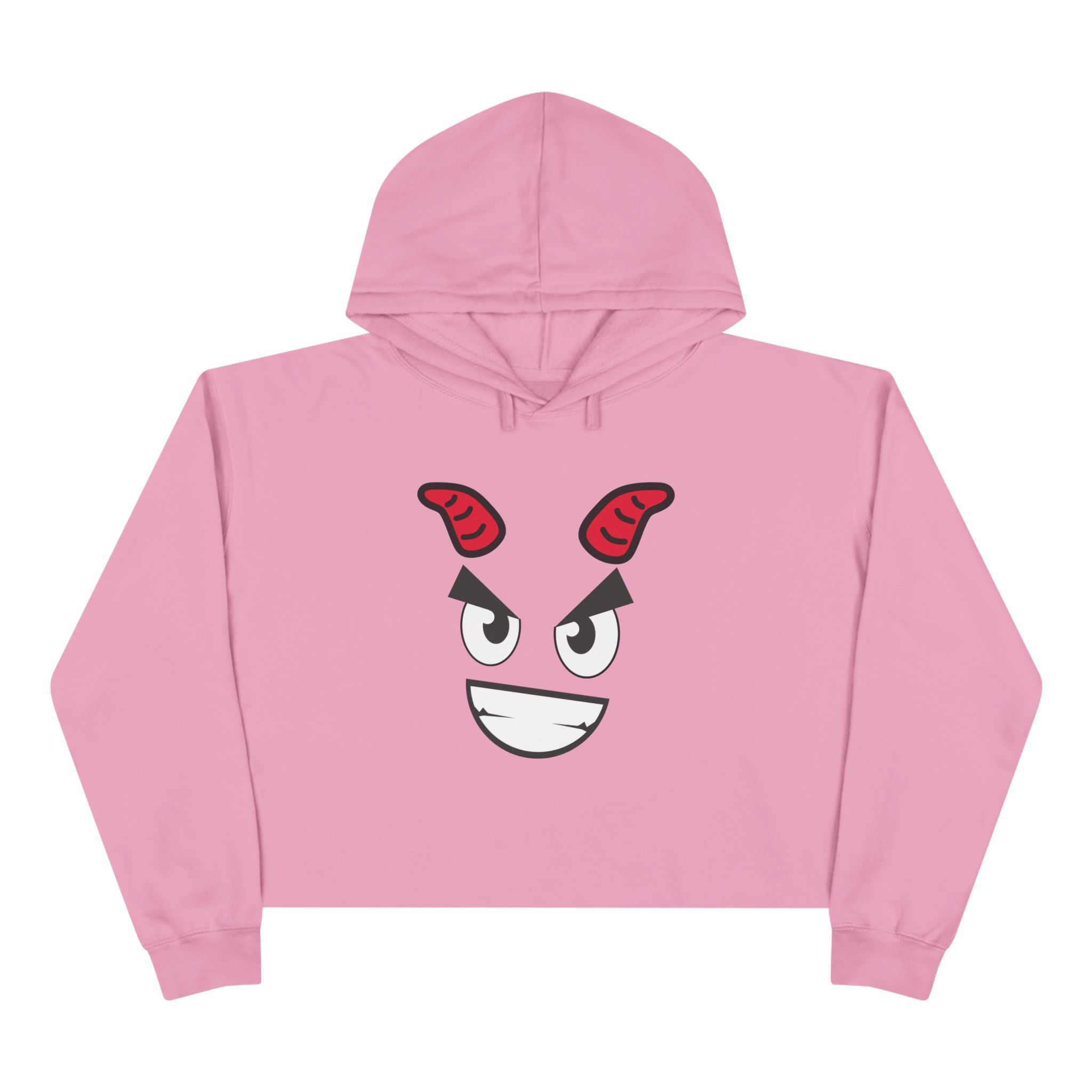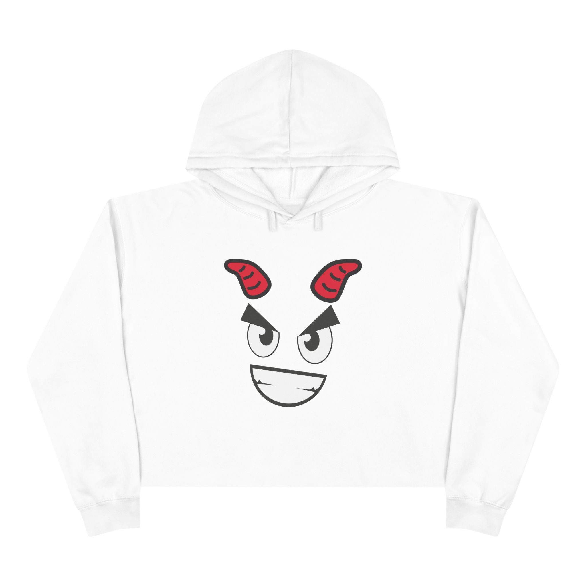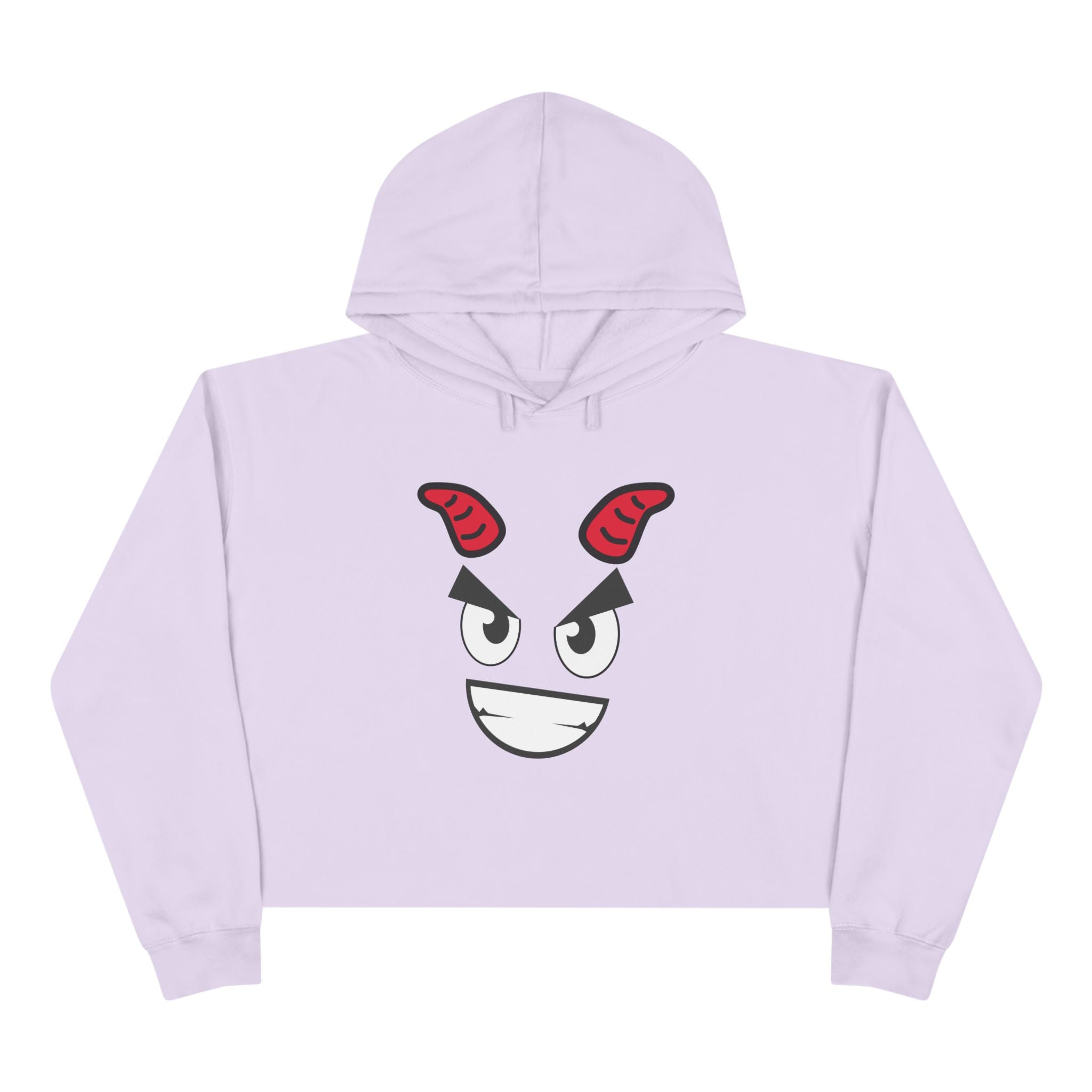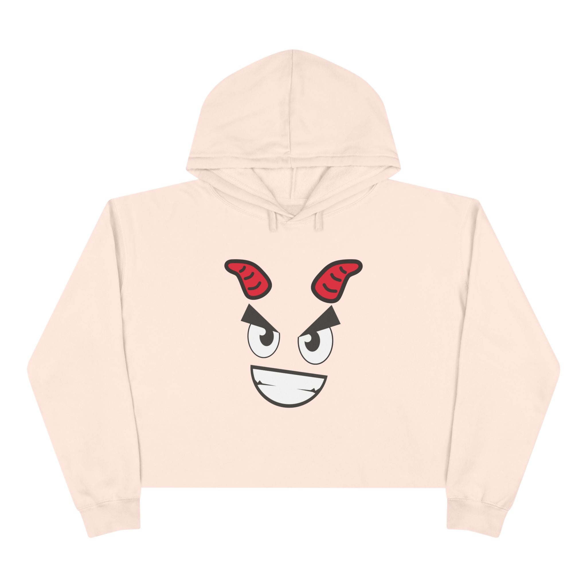 Demon Face Crop Hoodie - Gothic Devil Graphic Pullover Sweatshirt