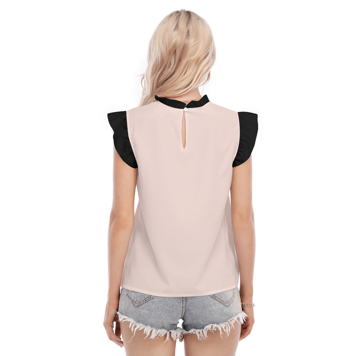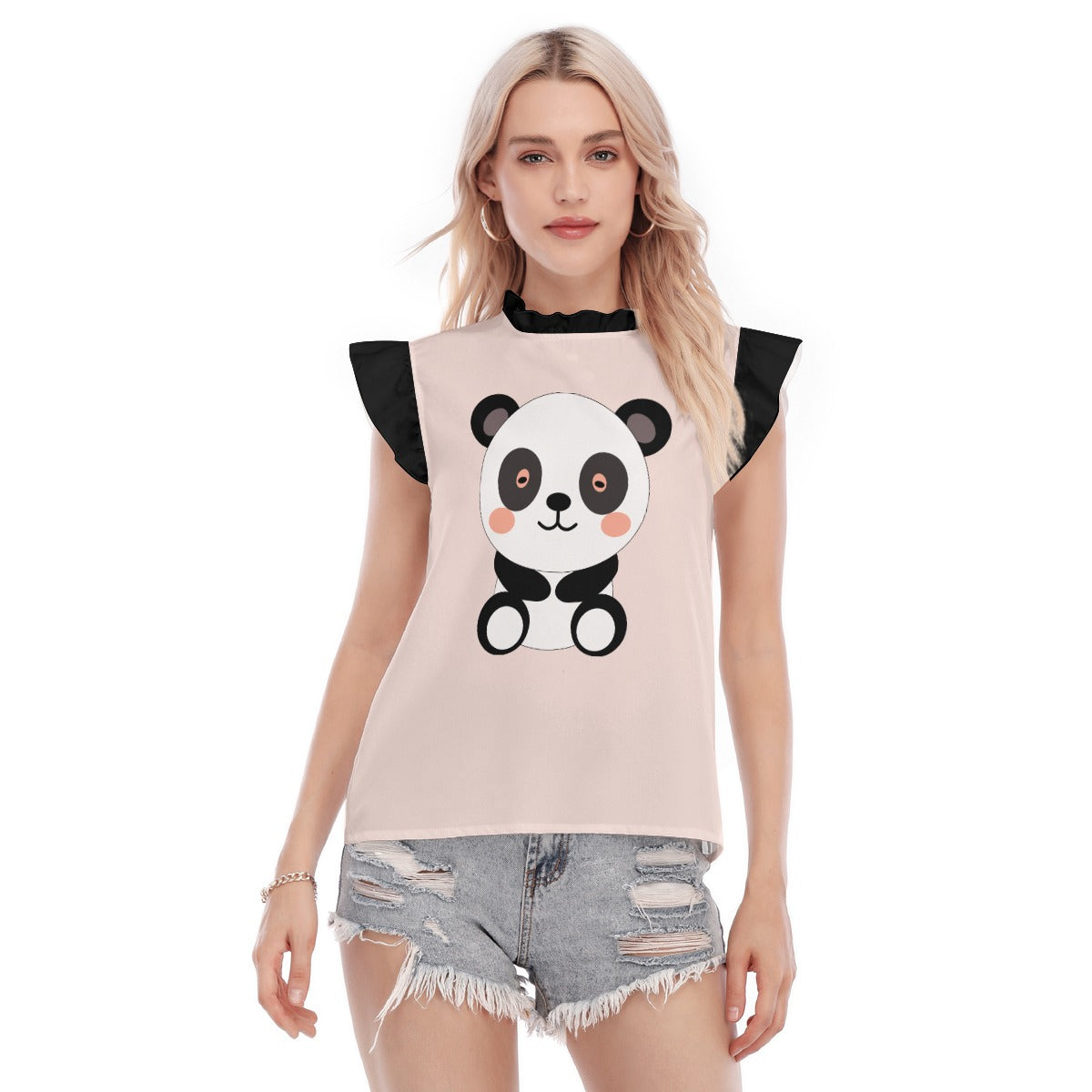 Kawaii Heaven Women's Cute Panda Graphic Ruffle Sleeve Blouse - Pink