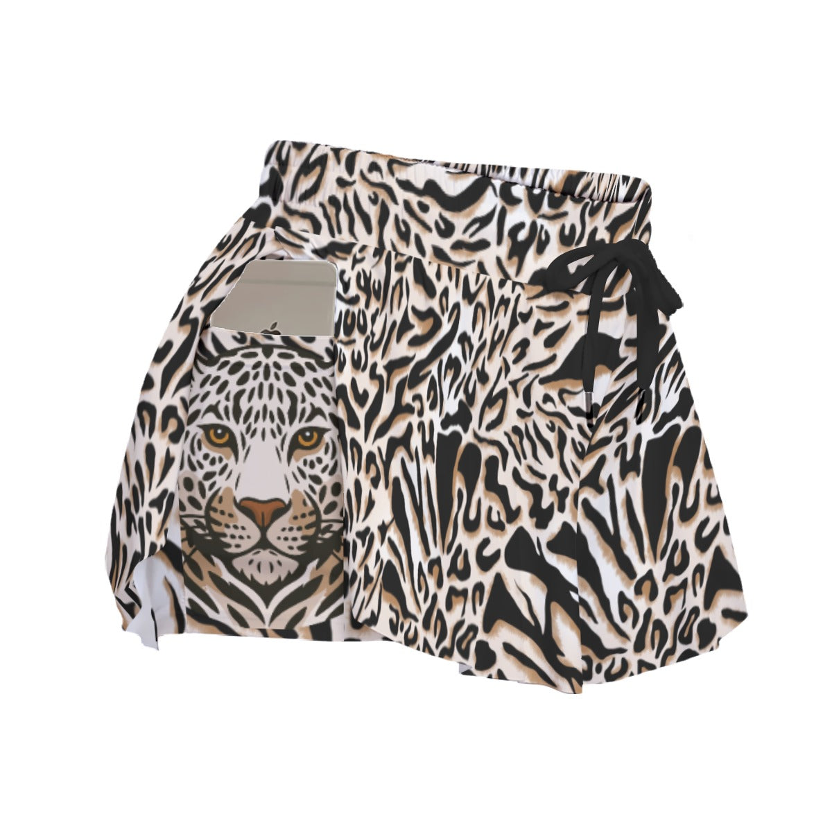 Kawaii Heaven Women's Leopard Print Skorts with Pockets - Sporty Skirt Shorts with Inner Legging, Microfiber Athletic Skort