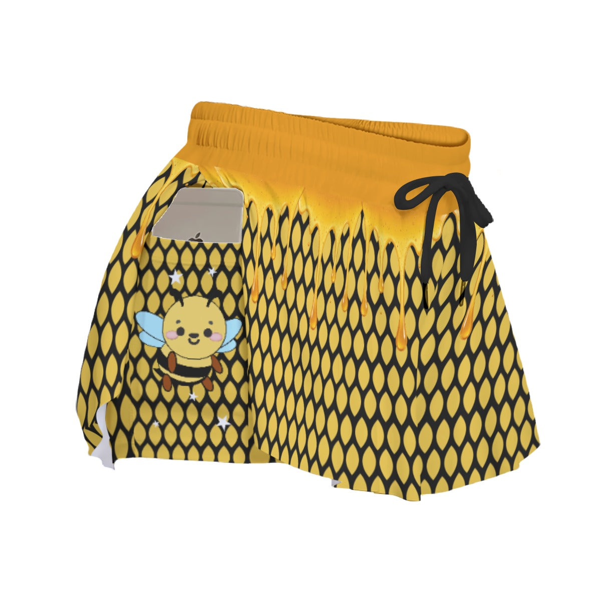 Women's Bee Honeycomb Print Sport Skort with Pockets - Soft Microfiber Active Skort
