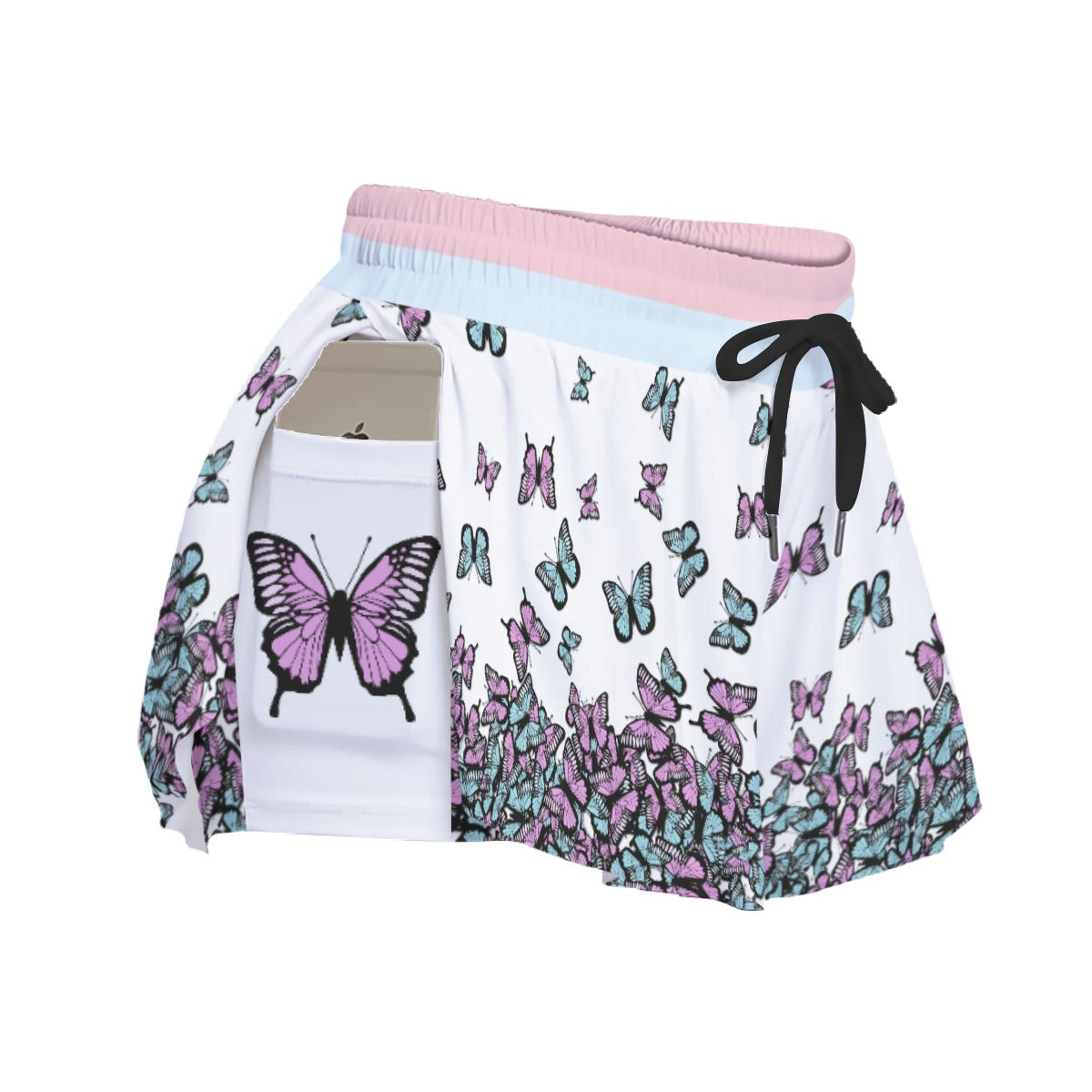 Step into your workout with style and comfort in these Butterfly Print Athletic Skorts. Designed for active women who want to stay fashionable on the move, these skorts combine the elegance of a skirt with the functionality of built-in shorts. Whether you're hitting the gym, jogging in the park, or practicing yoga, the soft and stretchy fabric ensures freedom of movement without any tightness or discomfort. The side pockets offer convenient storage for small essentials, making these skorts your go-to choice for any sporty adventure.