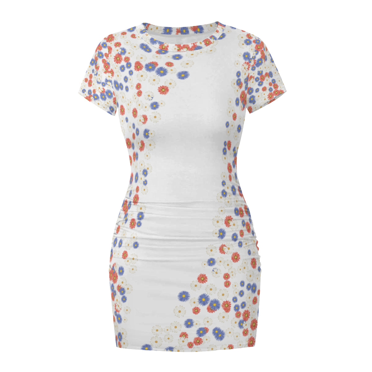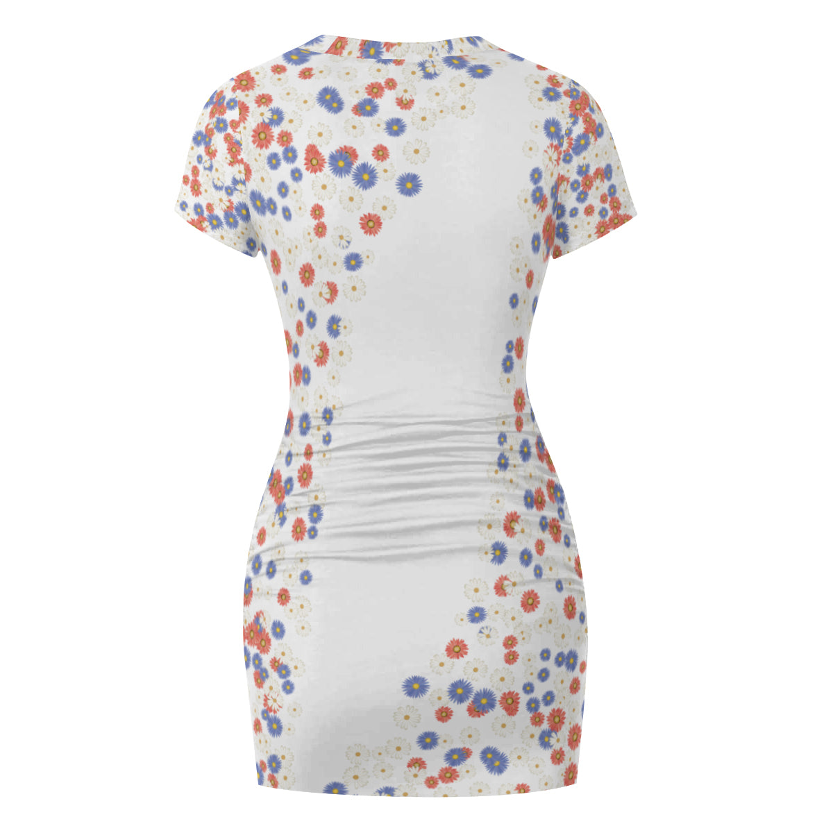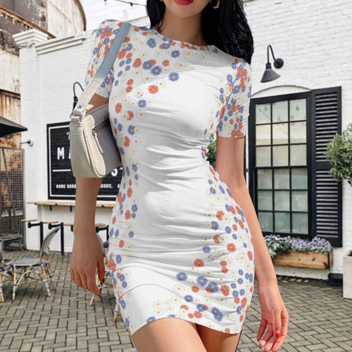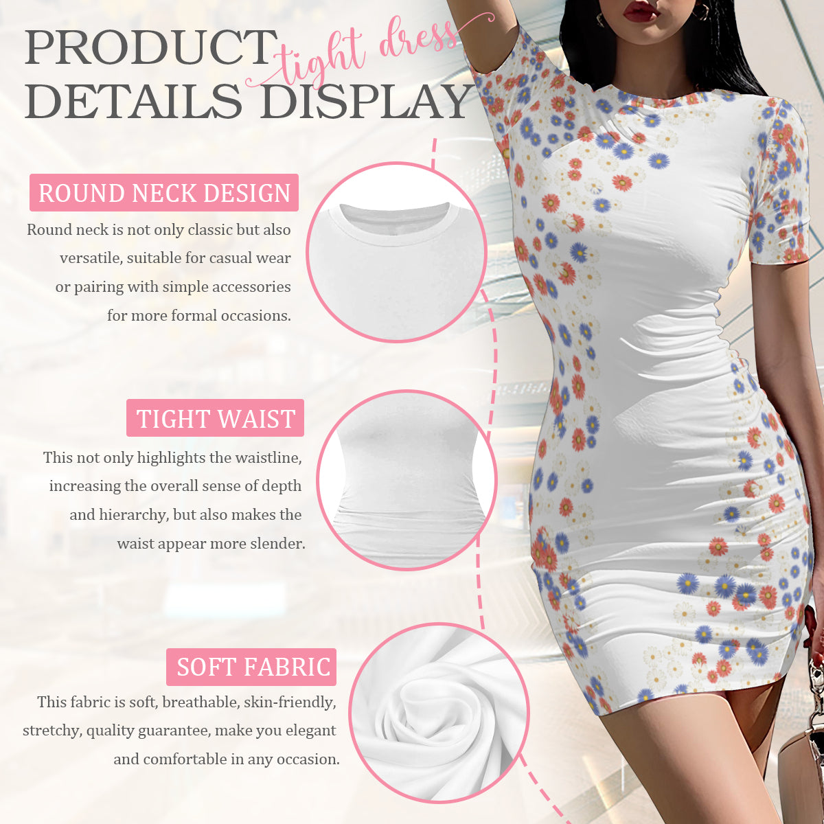 Floral Bodycon Mini Dress – Women’s Short Sleeve Milk Silk Summer Dress