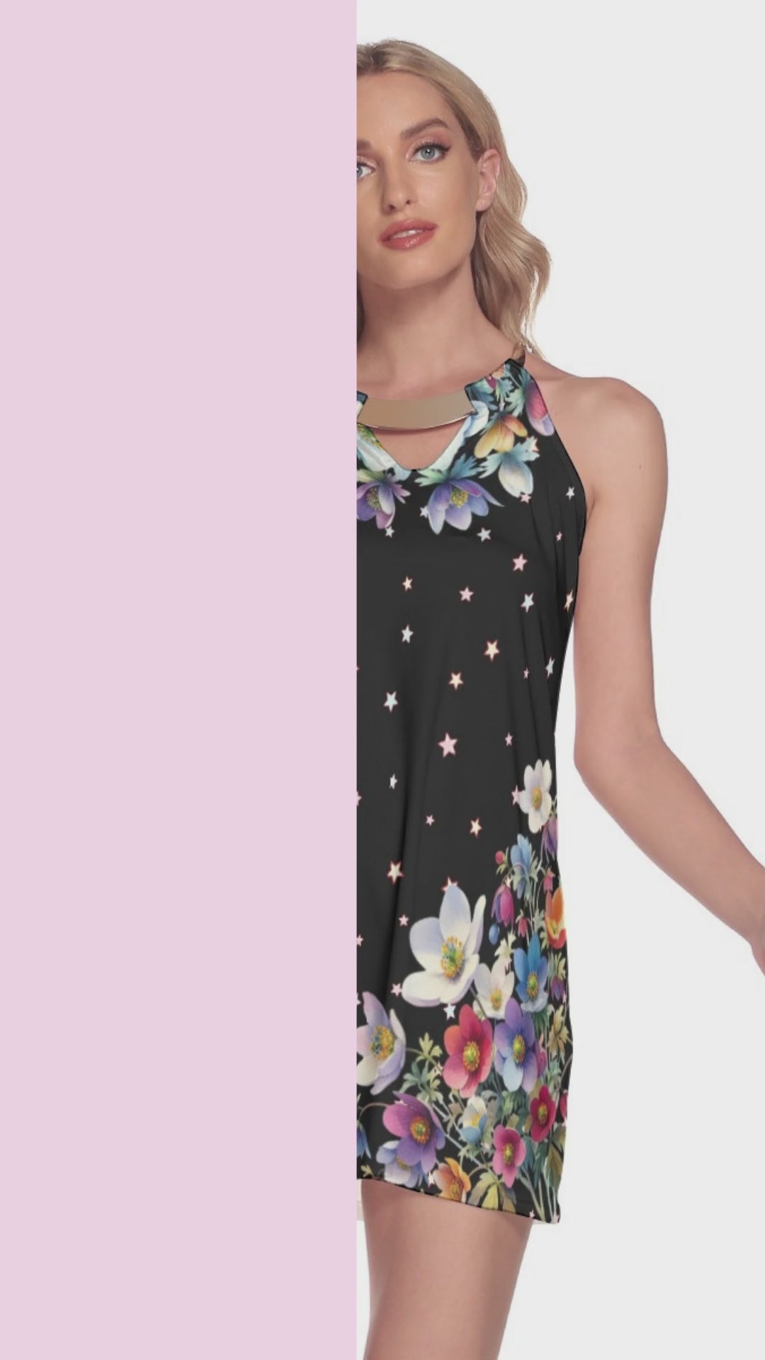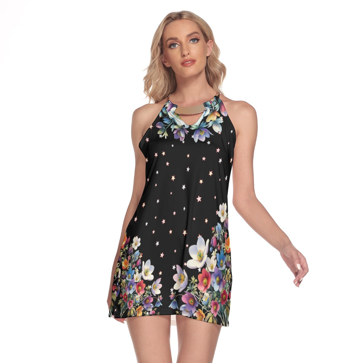 Floral Halter Mini Dress with Metal Ring