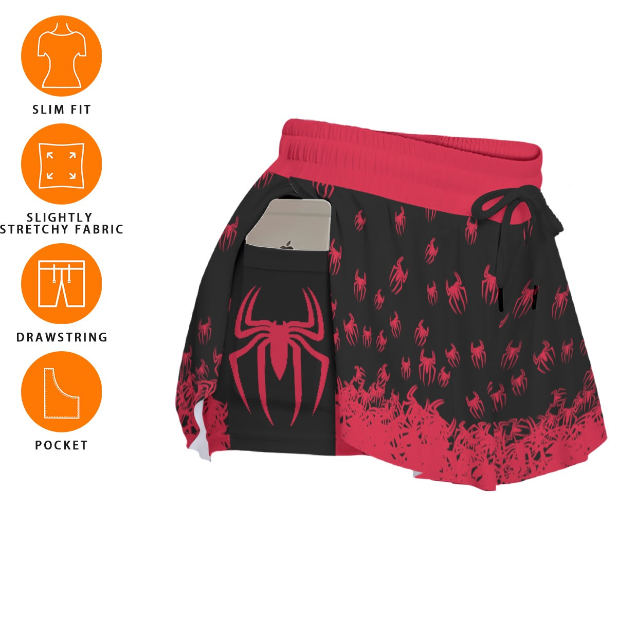 Kawaii Heaven Women's Red Spider Print Sport Skorts with Side Pockets