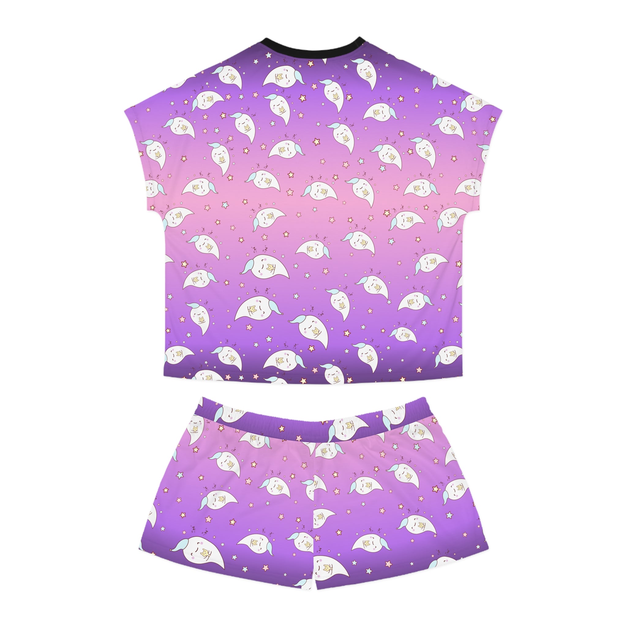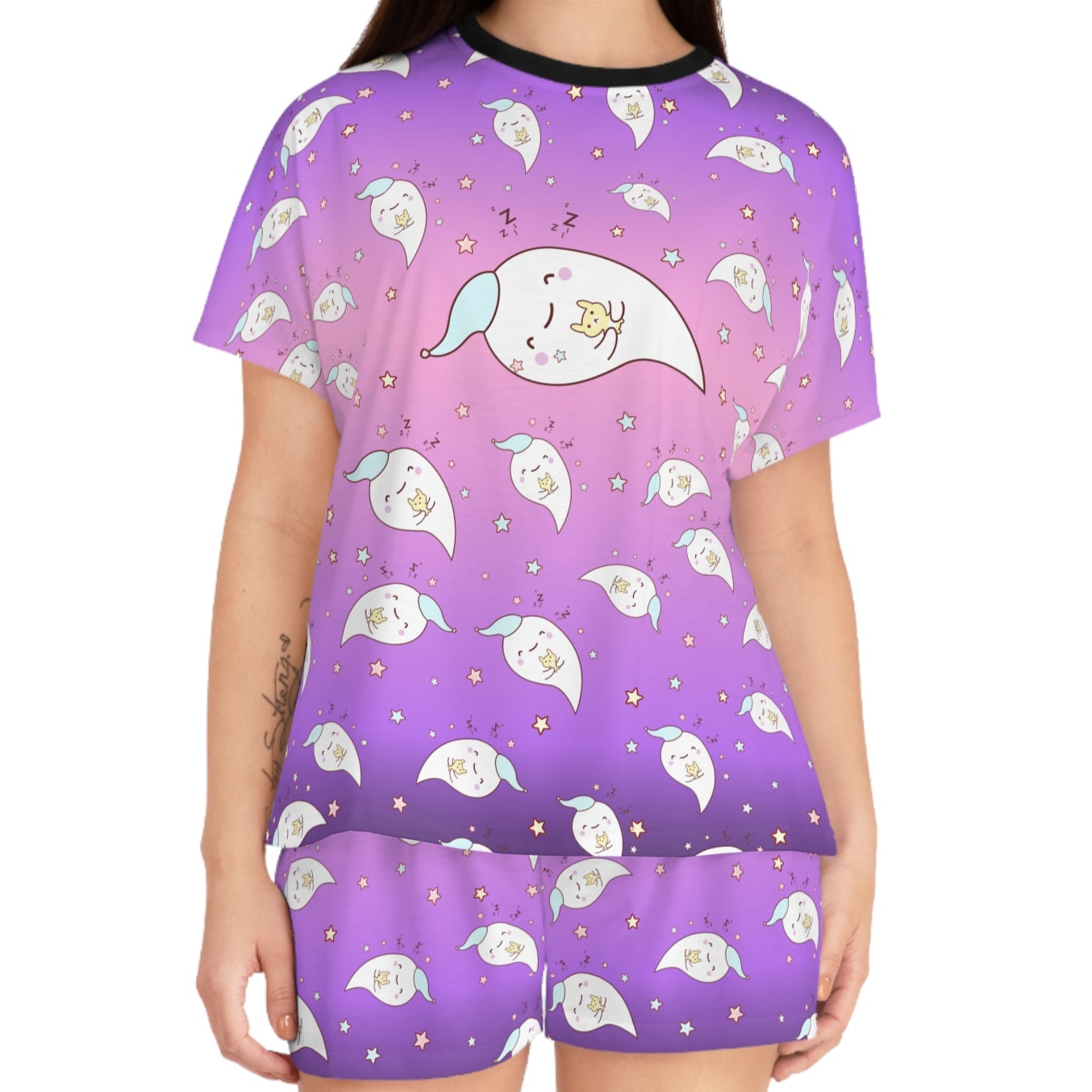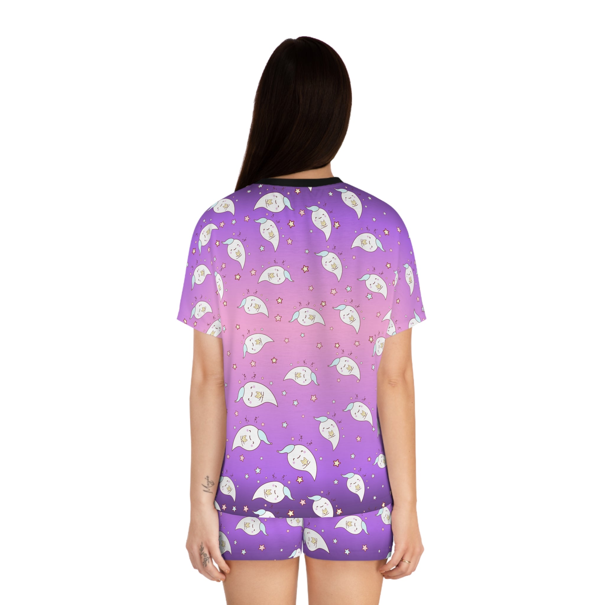 Ghost Print Women's Pajama Set - Short Sleeve Sleepwear for Her - Cute Pajamas