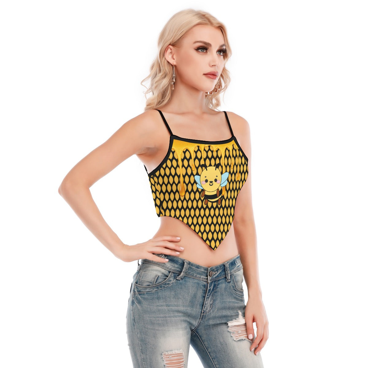 Step into a playful, stylish vibe with this Bee Honeycomb Crop Cami Top. Inspired by Kawaii and Y2K fashion trends, this sexy wrap-up design is perfect for casual outings or trendy streetwear looks. The spaghetti straps and black edging add a touch of charm, making it easy to pair with your favorite jeans for a standout ensemble. Whether you're heading to a coffee date or a day out with friends, this top brings fun and fashion together effortlessly.