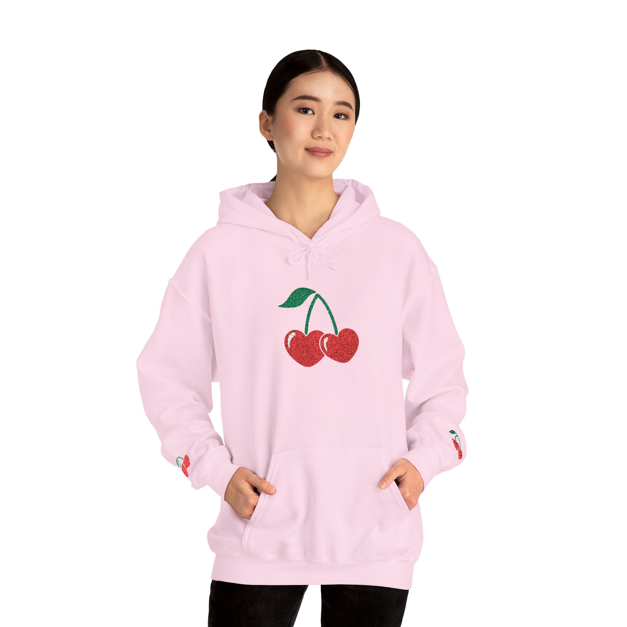 A soft, embroidered hoodie that brings a playful, heartfelt touch to everyday wear. The small cherry-heart motif sits stitched on the chest, like a quiet emblem of joy—bright but subtle, sweet without being saccharine. Slip it on during slow mornings with coffee, post-gig cool-downs, or late walks through lit streets. The roomy kangaroo pocket keeps hands warm and phone close. The double-lined hood and color-matched drawcord give a finished look while the classic fit layers easily over tees or under coats. For people who like a touch of hand-crafted charm in their wardrobe, this hoodie feels lived-in from the first pull—comfort that carries a little smile.