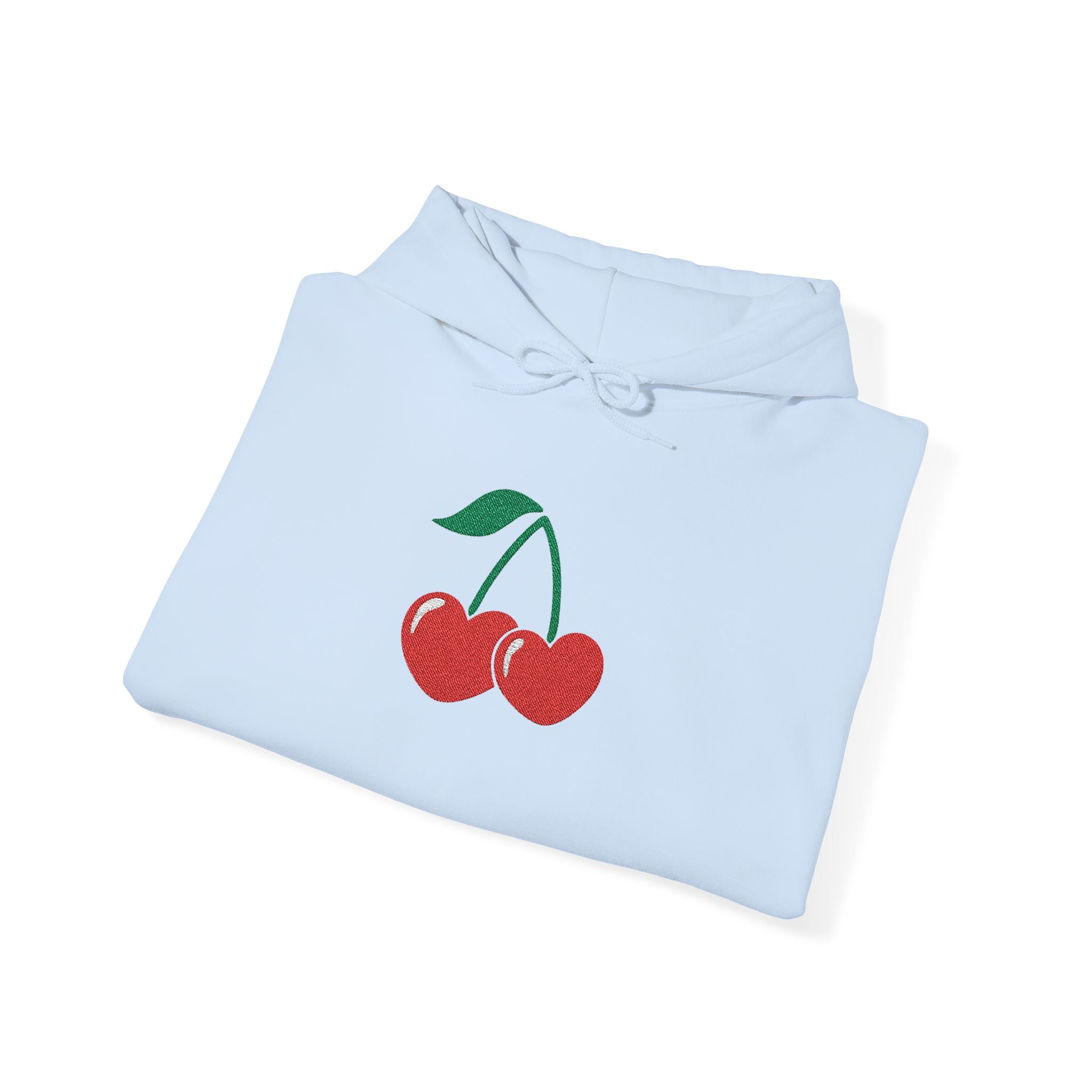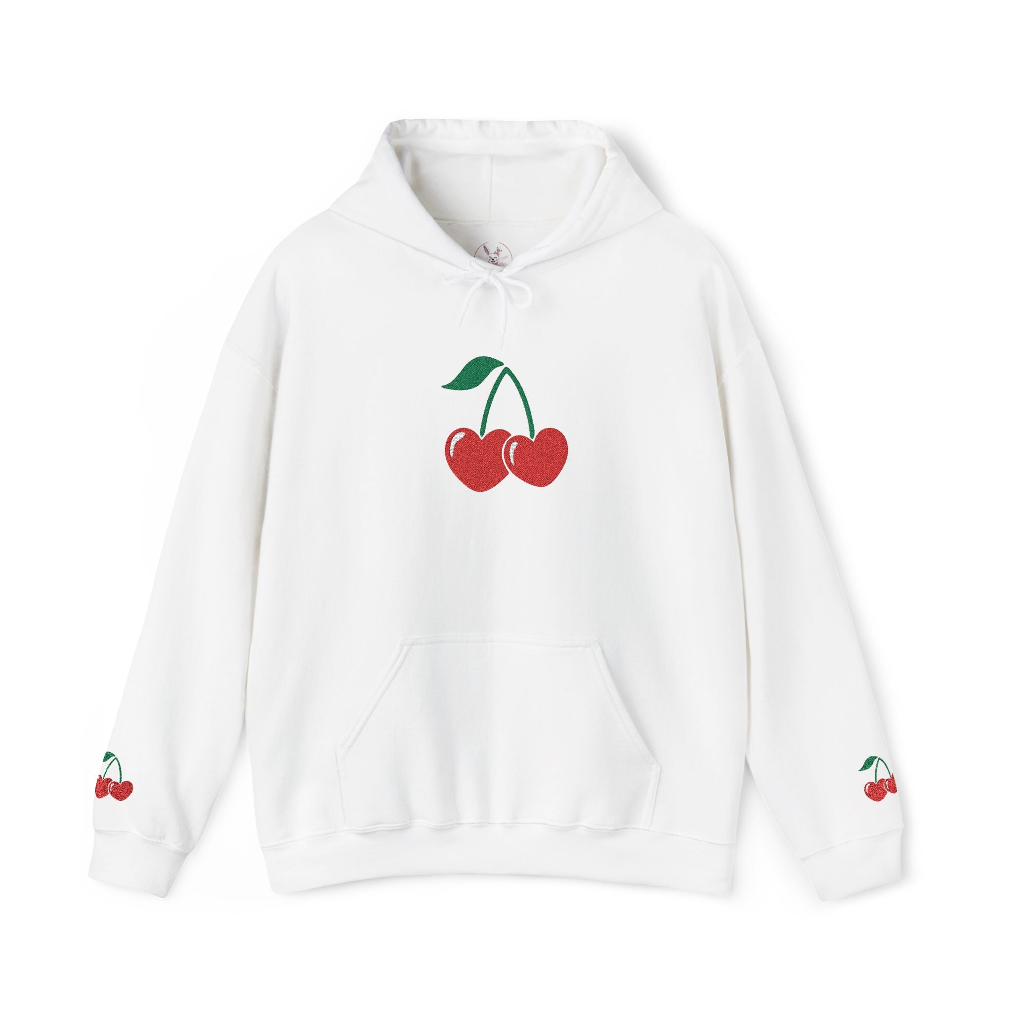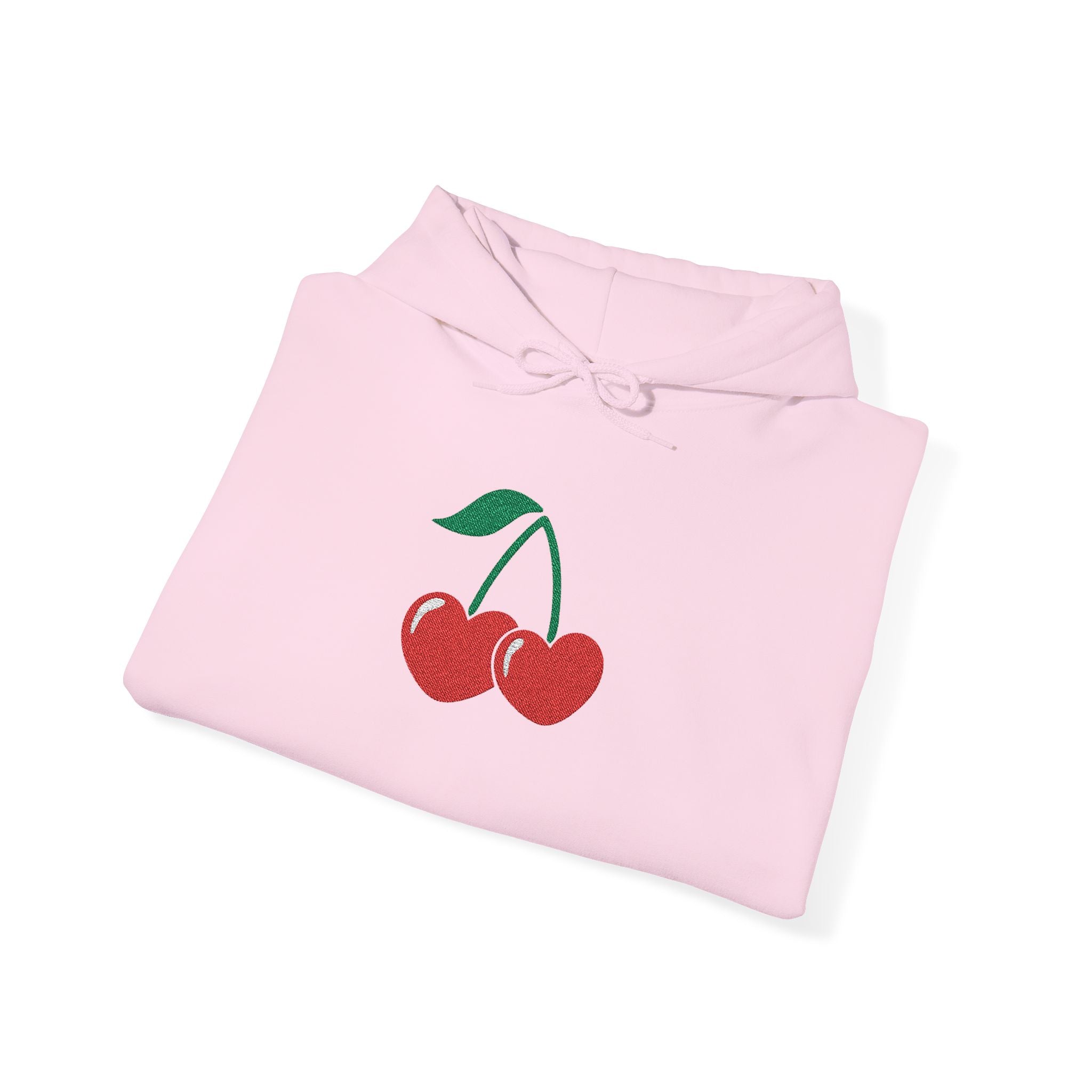 Cherry Heart Embroidered Hoodie — Heart Cherry Graphic Hooded Sweatshirt