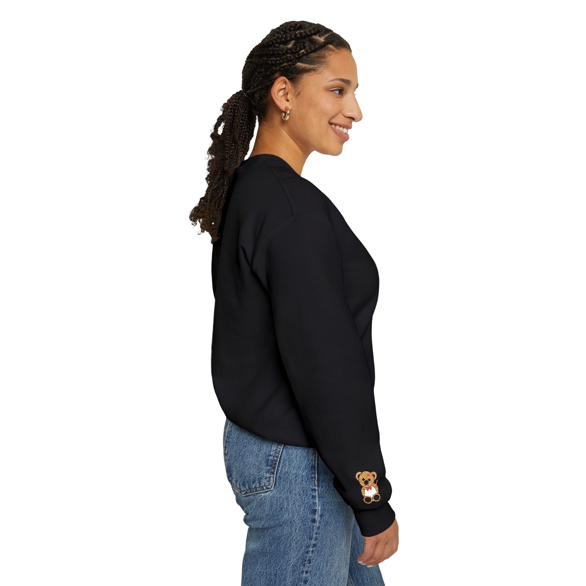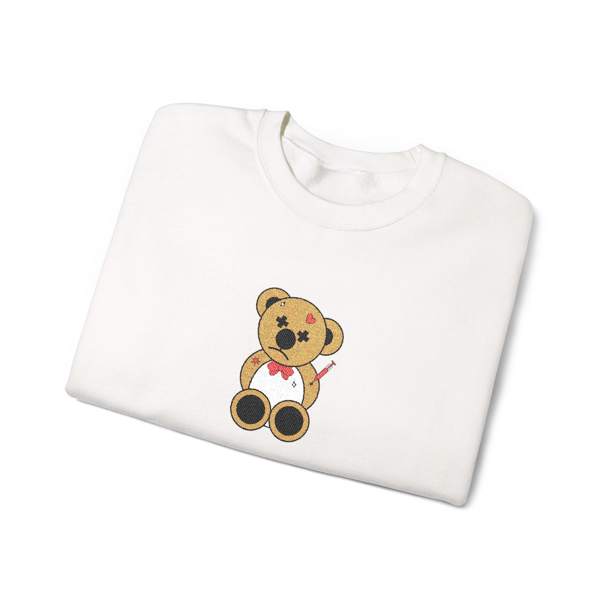 Soft, small-stitched teddy hugs stitched into a midweight crewneck — this sweatshirt feels like a familiar friend. The embroidered bear sits quietly on the chest, a subtle, nostalgic detail that warms pockets of the day: morning coffee on the porch, library afternoons, or slow walks home when the air turns crisp. Built with a classic fit and durable double-needle stitching, it wears in without losing shape. The fabric’s soft, slightly fleeced interior and ribbed collar keep comfort steady, while ethically sourced cotton and OEKO-TEX dyes give you peace of mind as you reach for it again and again.