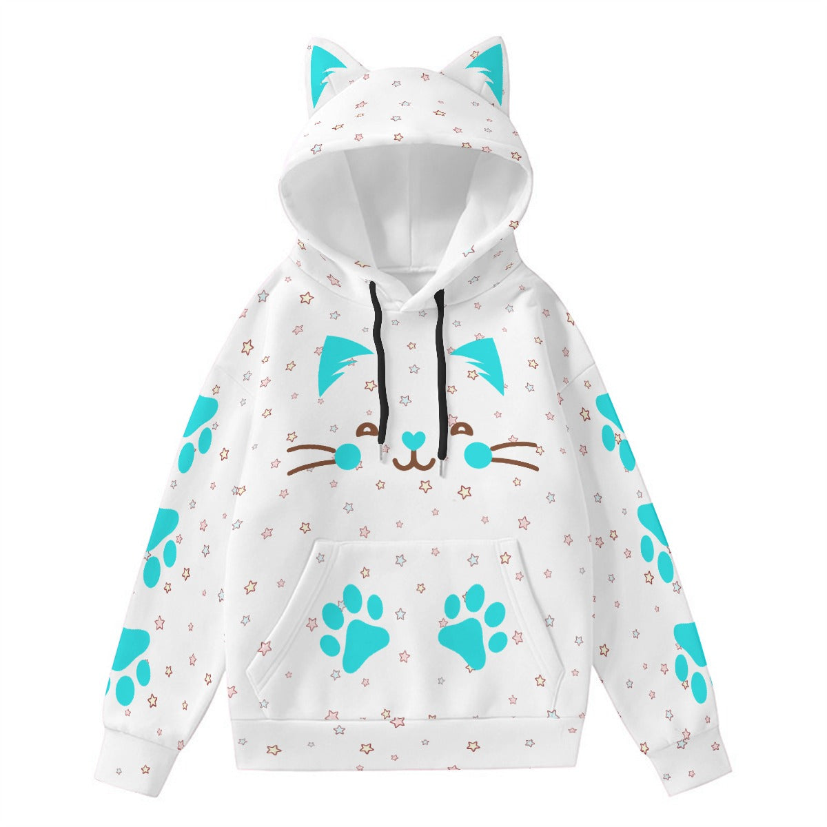 Kawaii Heaven Women's Cute Cat Ear Hoodie with Blue Paw Print Design