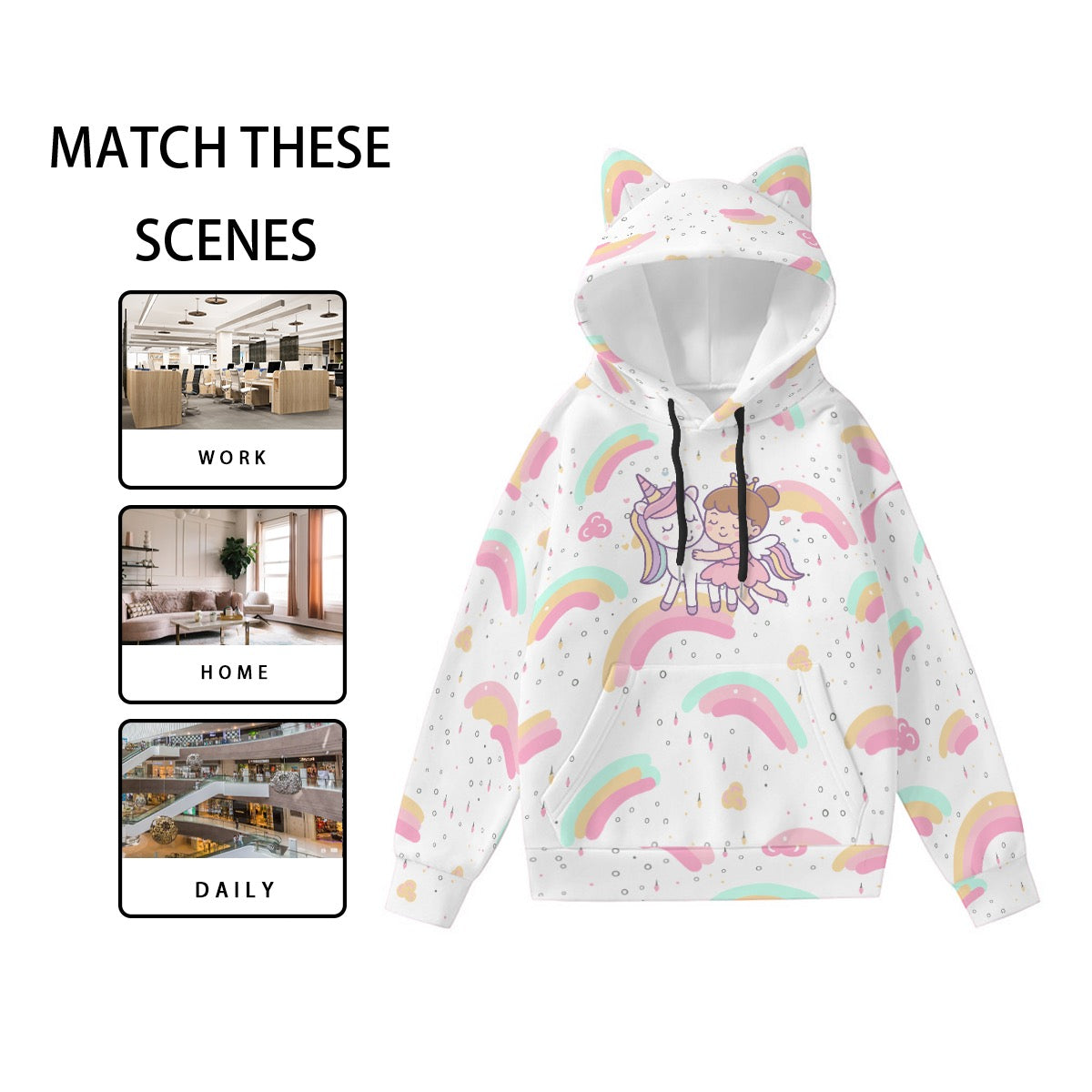 Kawaii Unicorn Cat Ear Hoodie for Women - Cute Pullover with Decorative Ears and High-Quality Print