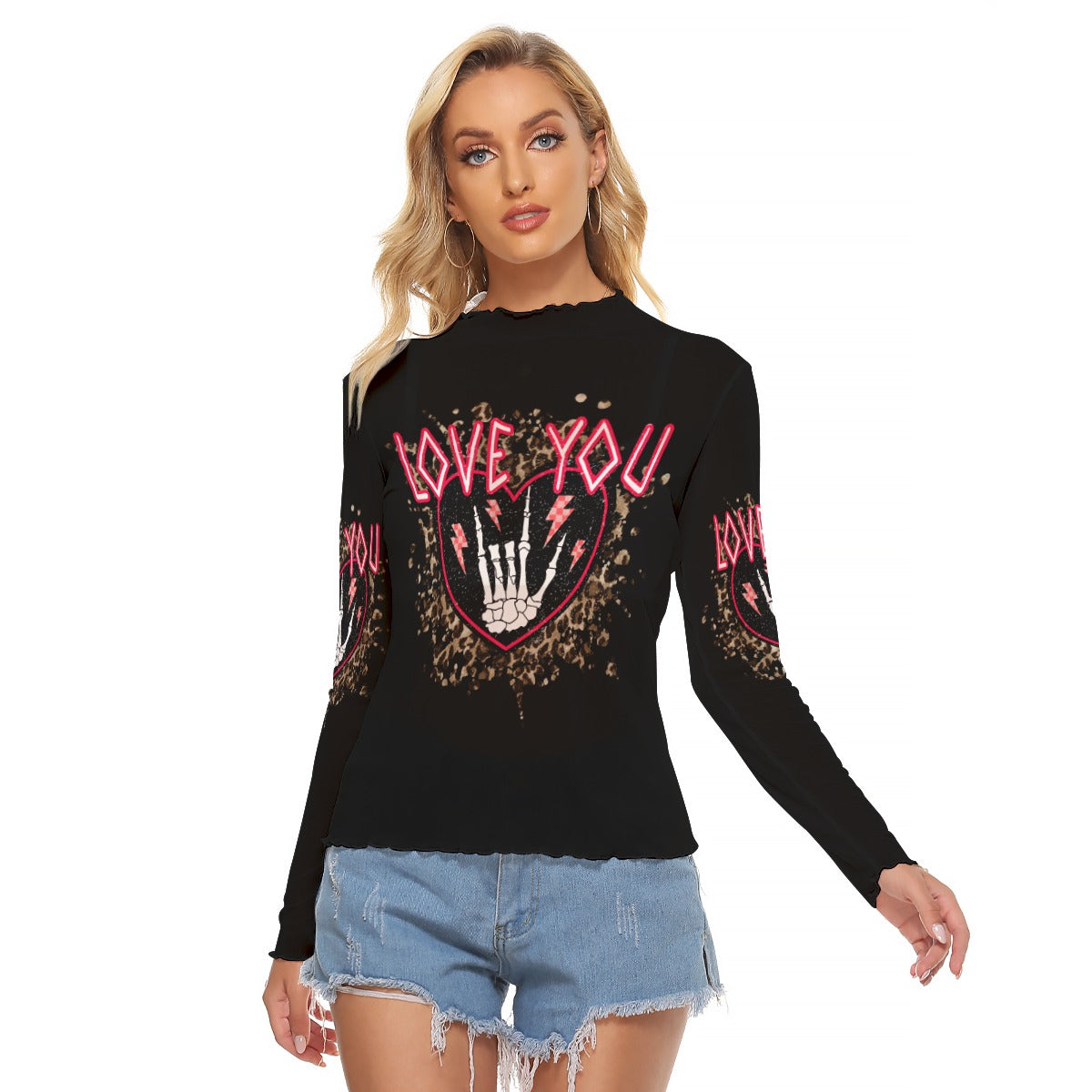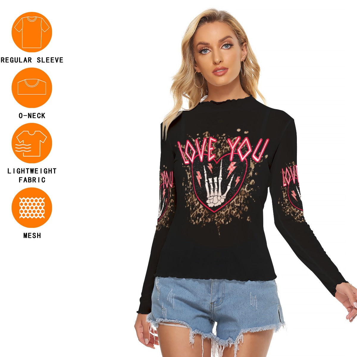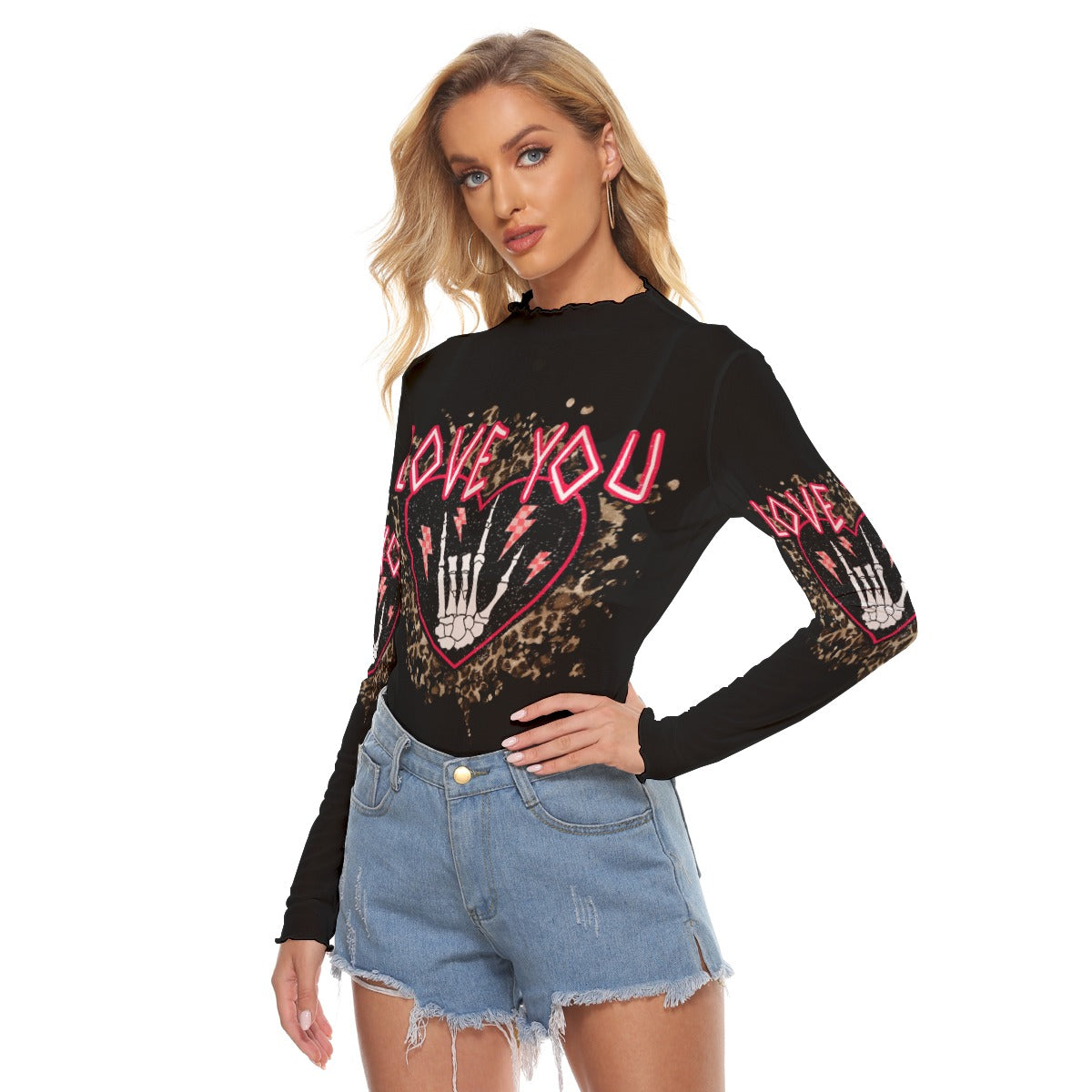 Love You Gothic Mesh Long Sleeve – Sheer Statement Top