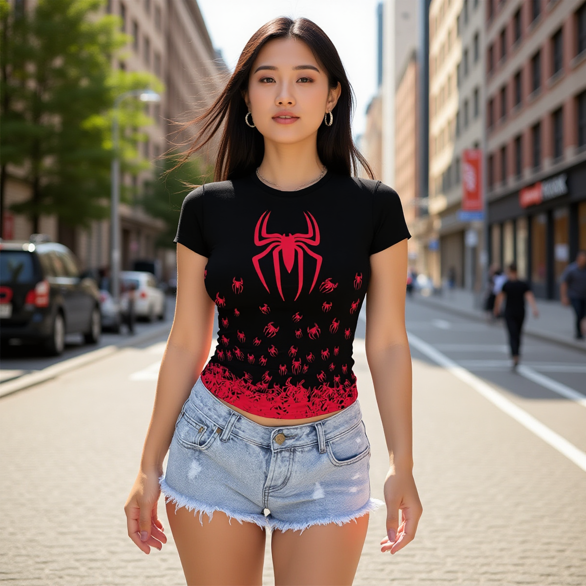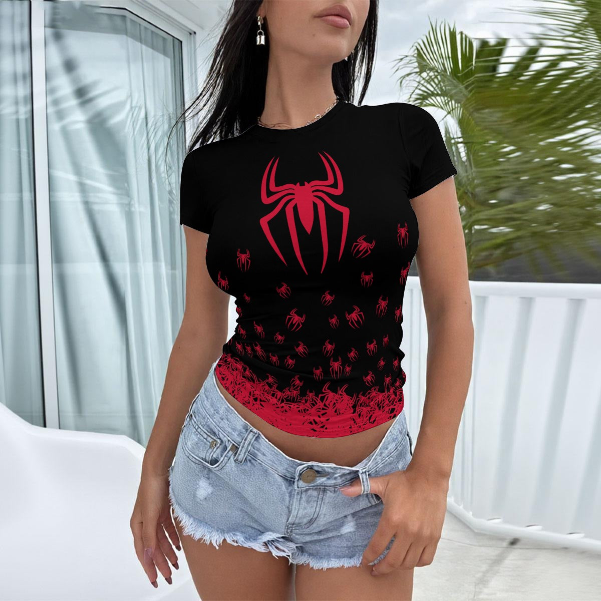Red Spider Graphic T-Shirt – Gothic Aesthetic Women’s Slim Fit Tee