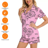 Kawaii Silky Pink Short Sleeve Pajama Set – Imitation Silk Summer Loungewear with Love Print