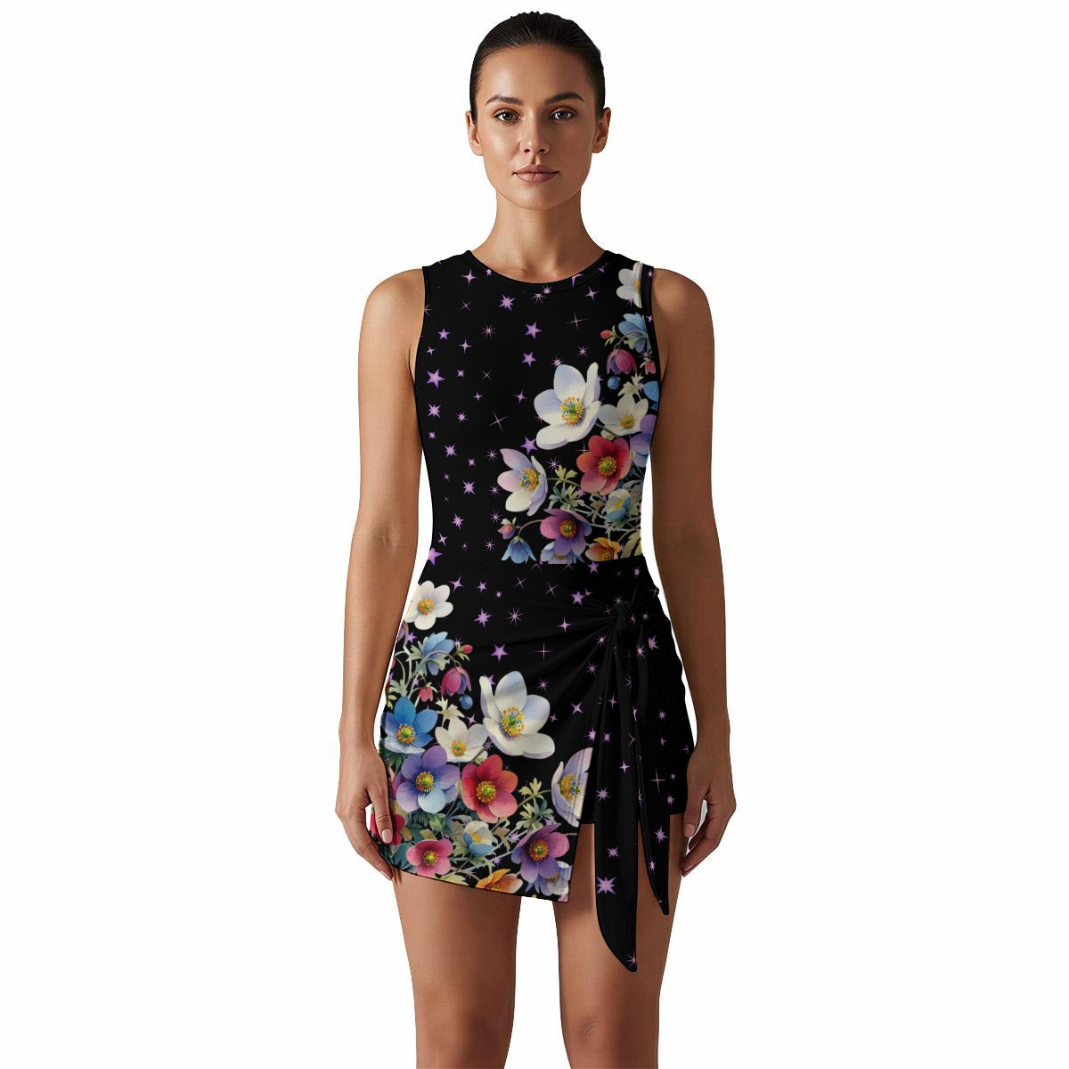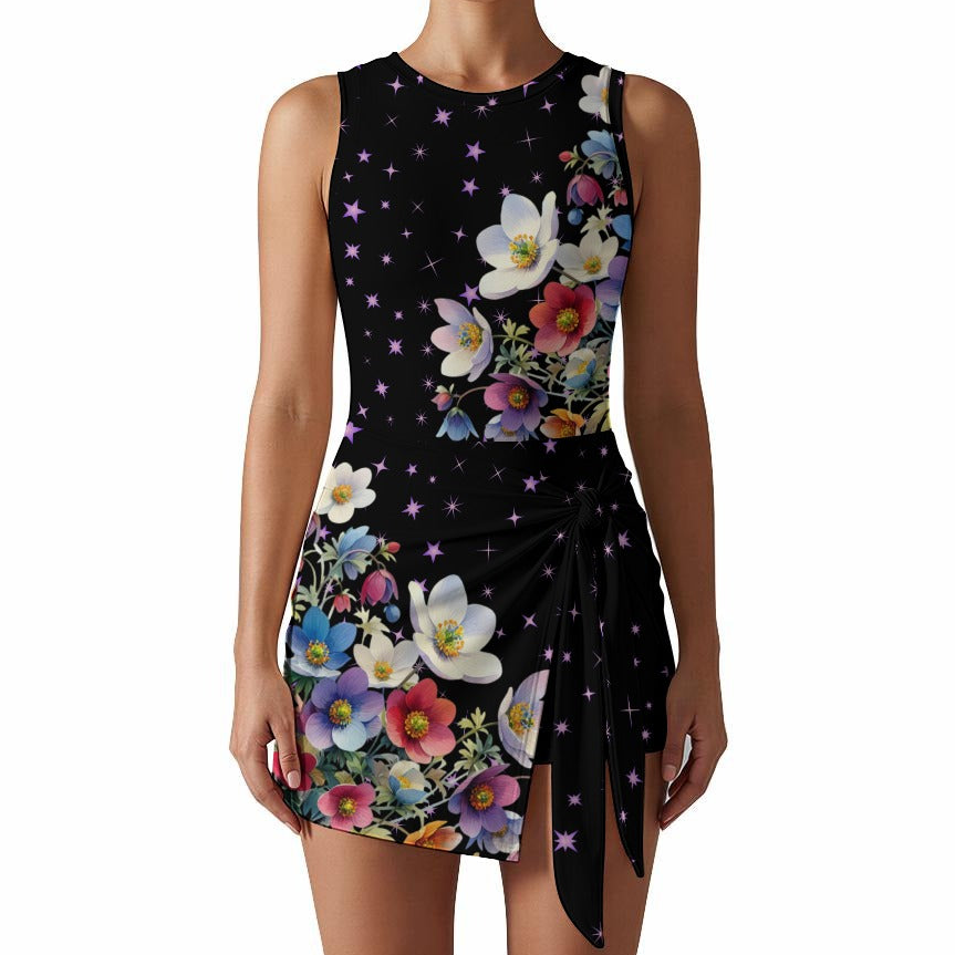 Floral Wrap Mini Dress with Built-In Shorts – Sleeveless Slim Fit Dress
