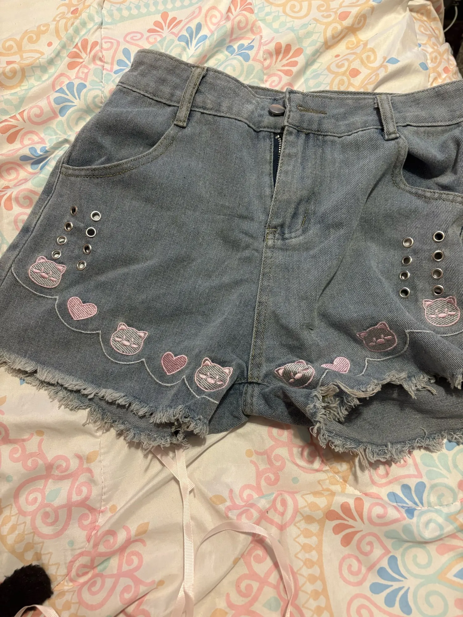 Upgrade your casual style with these Japanese Denim Shorts for Women, blending comfort, cuteness, and modern design. Featuring a flattering high waist fit, delicate embroidery details, and stylish bandage side ties, these shorts add a playful yet chic vibe to any outfit.
